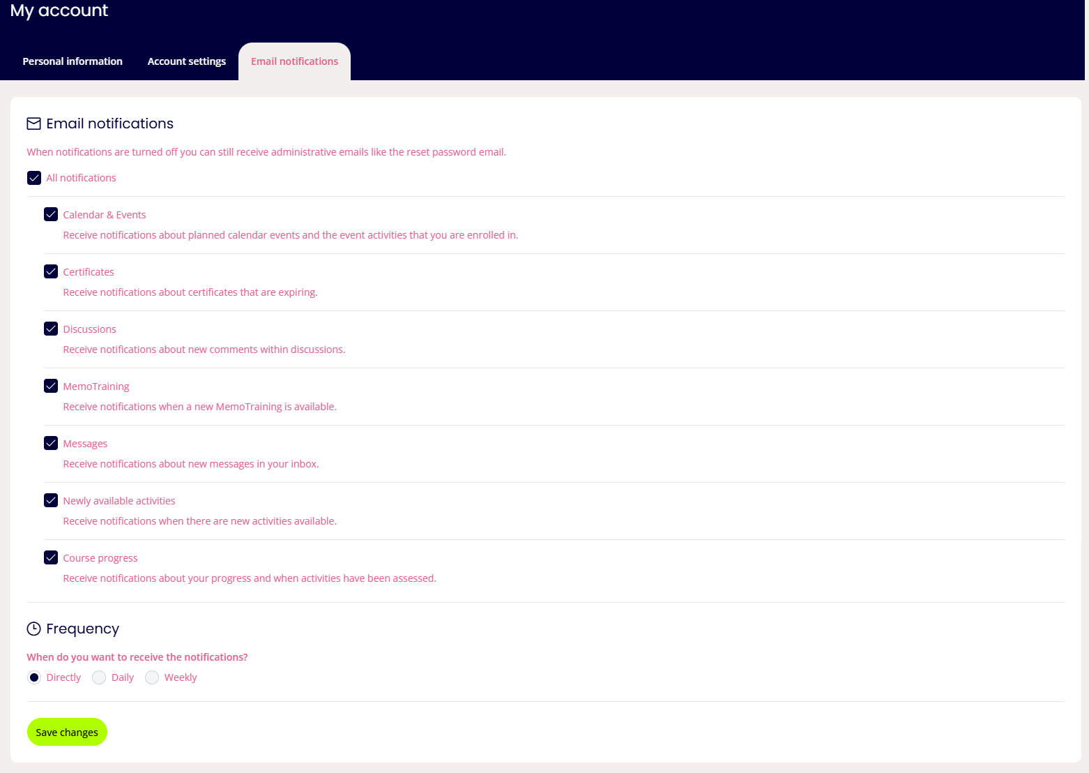 Click the tab E-mail notifications to check which notification you don't want te receive: