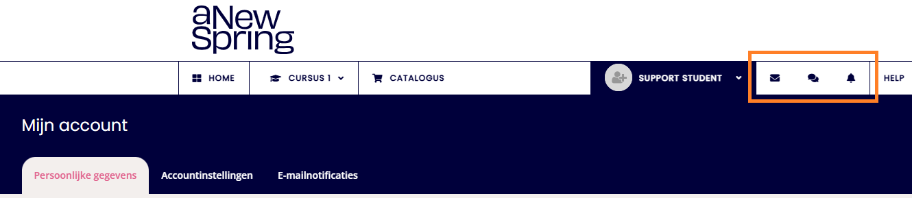 Ook al stel je in helemaal geen notificaties meer te willen ontvangen middels de mail, via de onderstaande iconen kun je de meldingen toch terug vinden.